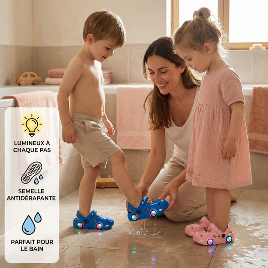 Claquettes enfant lumineuses avec motif voiture – sandales de bain avec semelle antidérapante