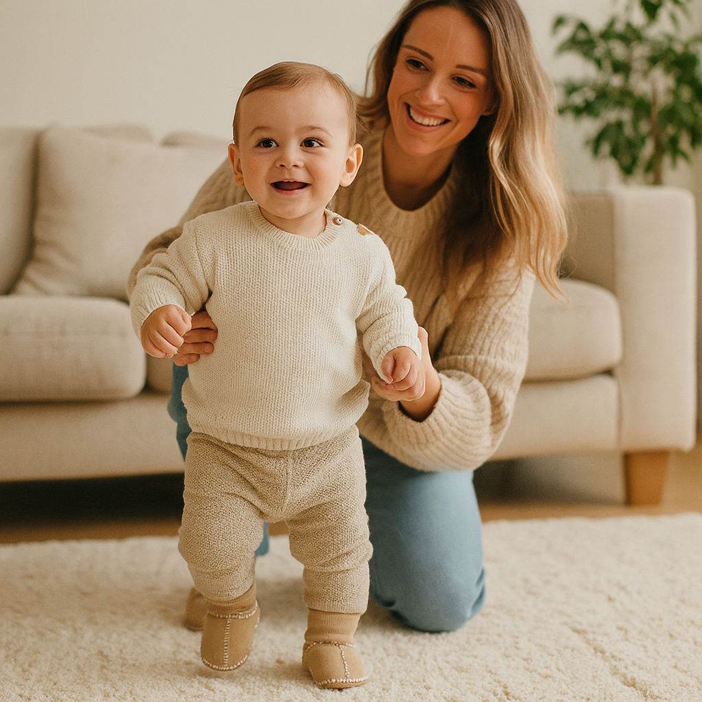 - 🦶 Assure une bonne stabilité en rampant et en se levant – La semelle antidérapante offre une meilleure adhérence sur les surfaces lisses et soutient les premiers mouvements.