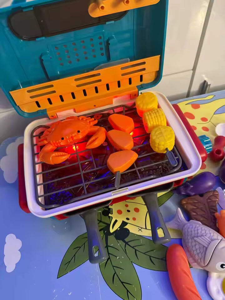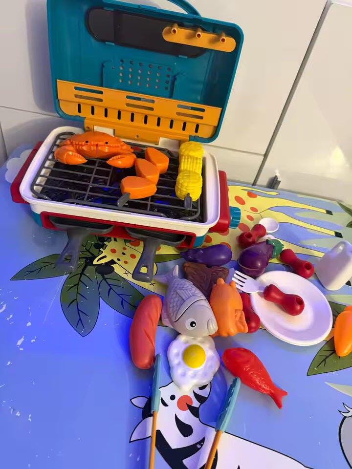 Ce petit BBQ est devenu le jouet préféré de mon fils et il adore voir la fumée apparaître comme dans une vraie cuisine. Les aliments qui changent de couleur rendent le jeu encore plus amusant et réaliste.